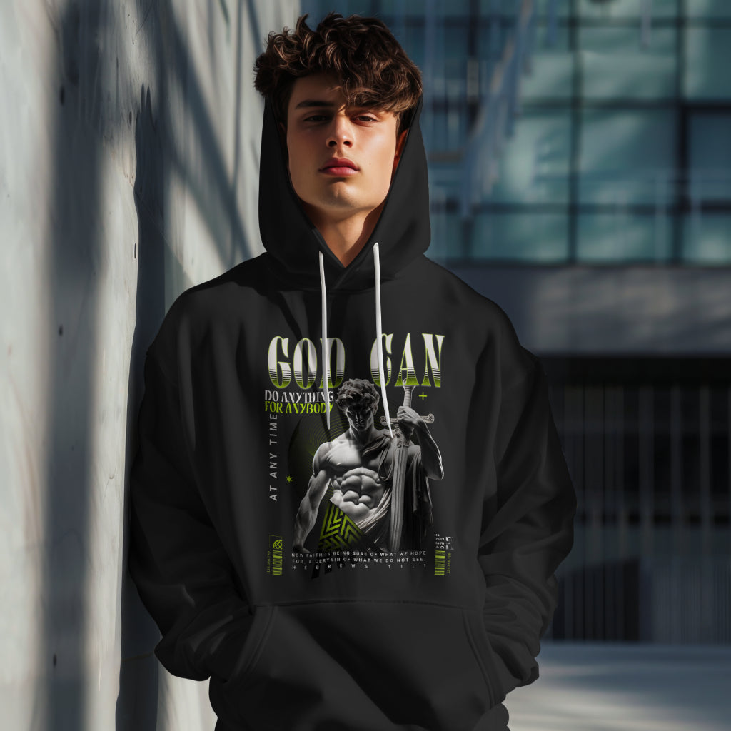 Introducing the "God Can" hoodie - a powerful blend of Christian faith and streetwear style. This isn't just clothing; it's a statement.