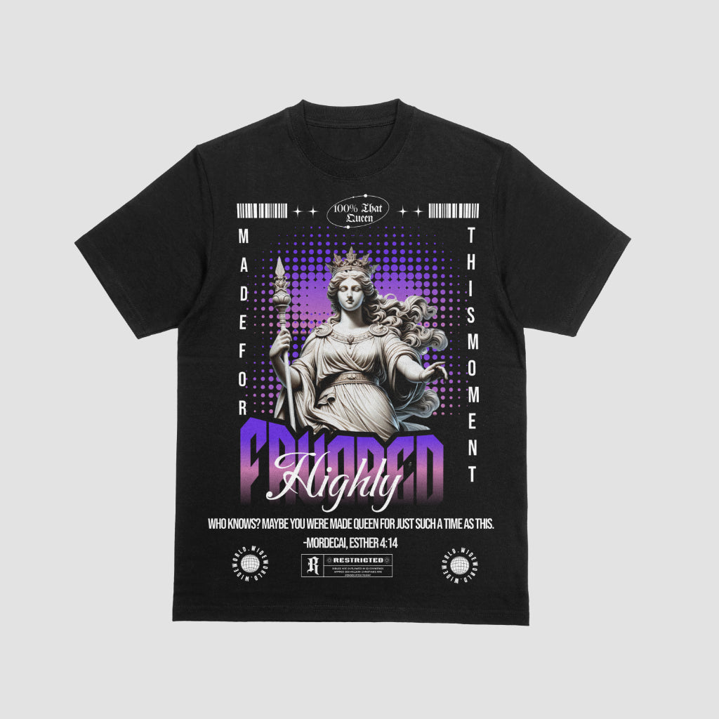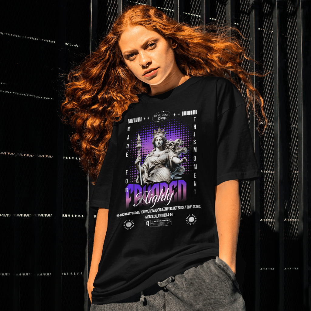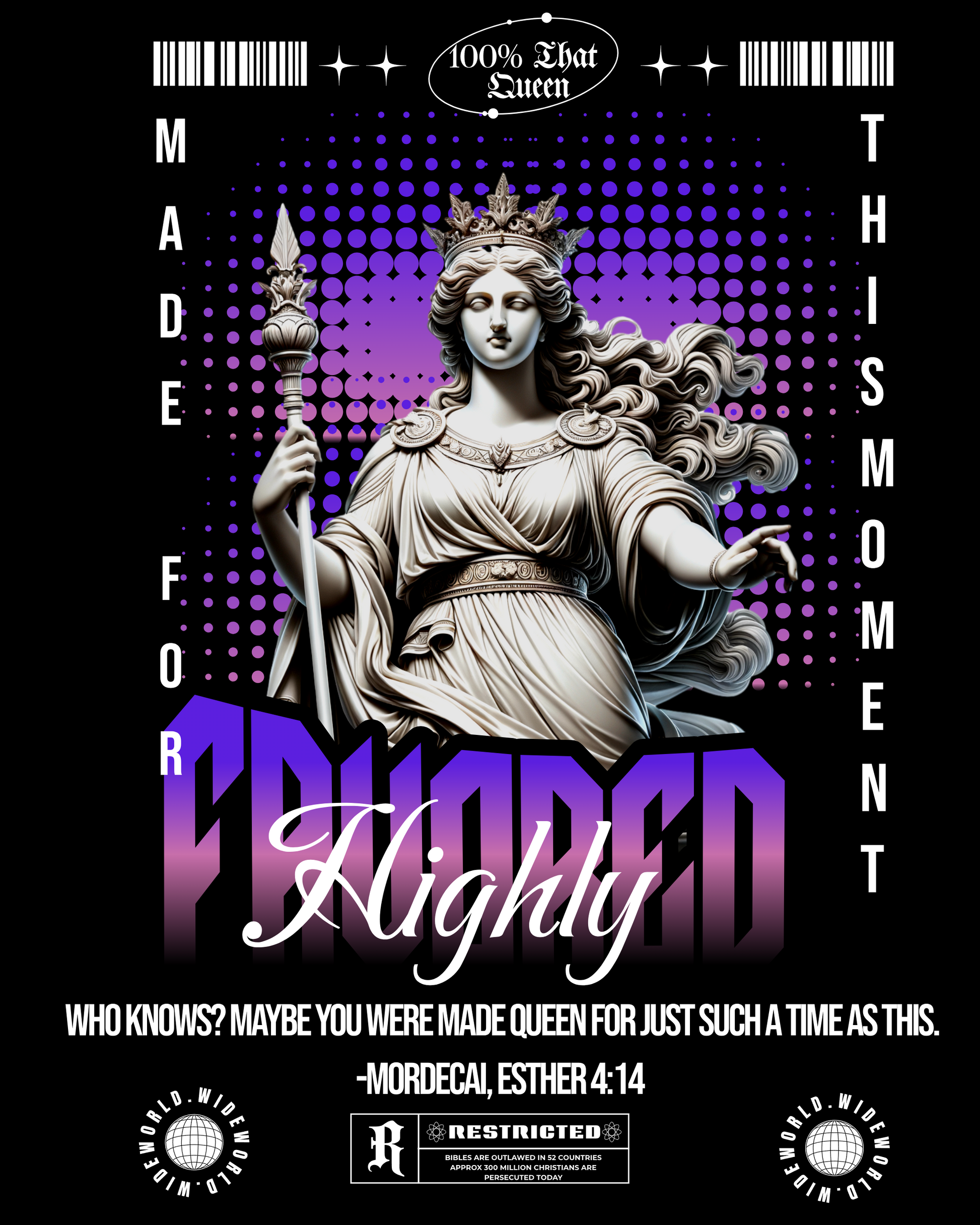 The design showcases a striking image of a queen, reminding us that we are all uniquely created with a purpose. It's a call to embrace our God-given talents and step into our destiny.